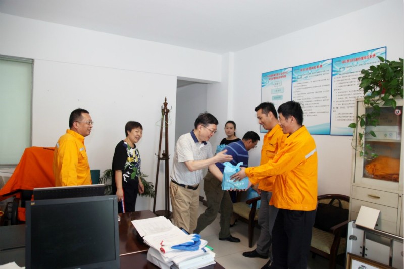從7月份入伏以來,38℃左右的高溫天氣已持續數日,公司高溫崗位的職工不受高溫影響,堅守崗位,以飽滿的工作熱情保證了工作的正常開展。食堂師傅們在炒鍋前忍受著50~60℃的高溫,保質保量地做好每一道菜;司機班在高溫的天氣滿足出車需求;公司項目部的干部員工頂著烈日,深入工地檢查每一道工序,確保施工質量和進度;物業公司人員戰高溫認真做好園區安保等工作,針對大家的辛勤工作,公司工會及時組織了高溫慰問。8月9日,公司副總經理、工會主席趙美江,工會副主席祝建成來到公司食堂操作間、司機班、項目部以及物業公司,為大家送去了防暑降溫慰問品。